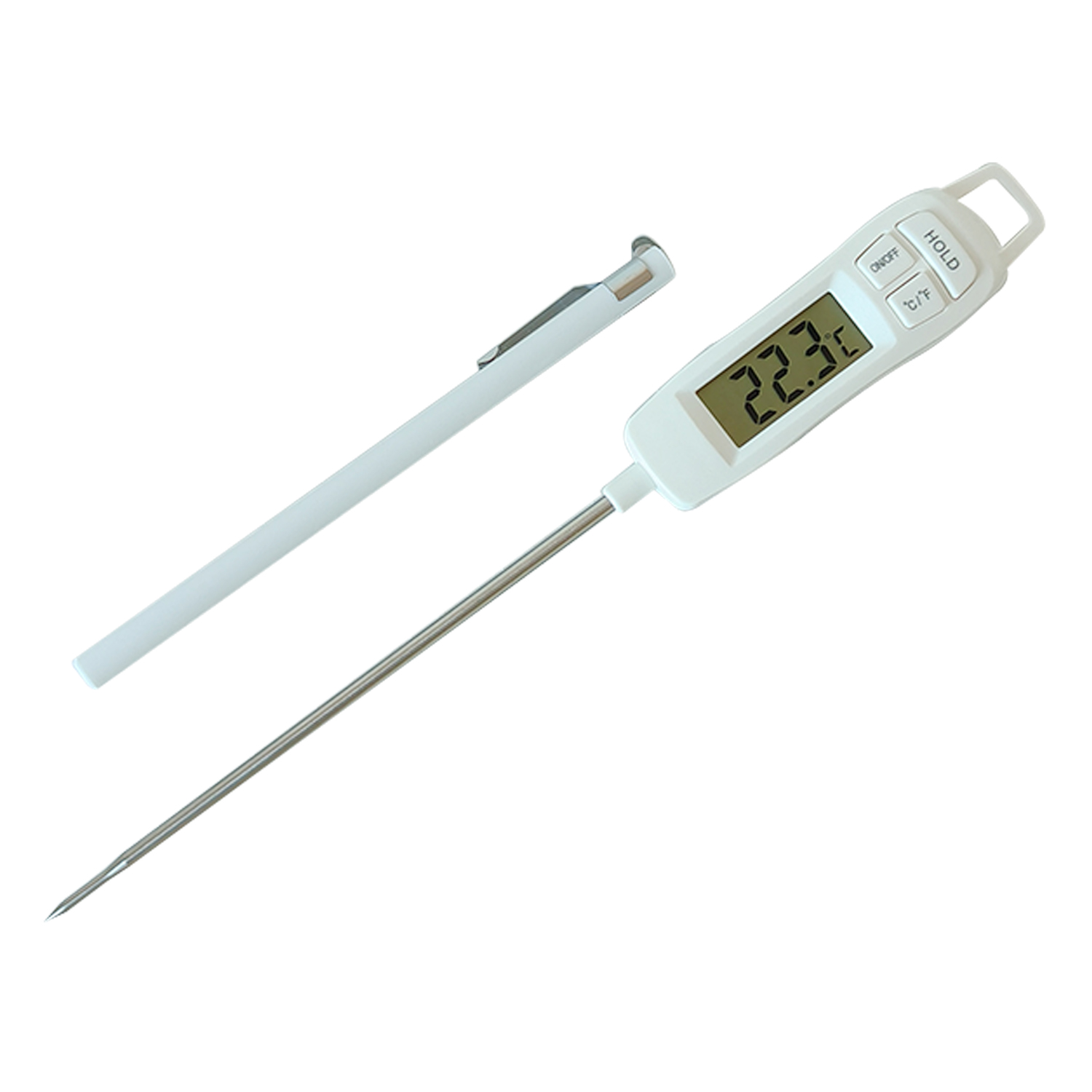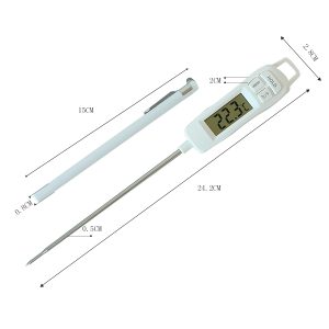 Conception de la sonde longue: le thermomètre est équipé d’une sonde longue qui pénètre profondément à l’intérieur de l’aliment pour s’assurer que la température réelle au centre de l’aliment est mesurée. Ceci est particulièrement important pour les aliments tels que les rôtis, les ragoûts, etc., qui doivent être chauffés uniformément.
